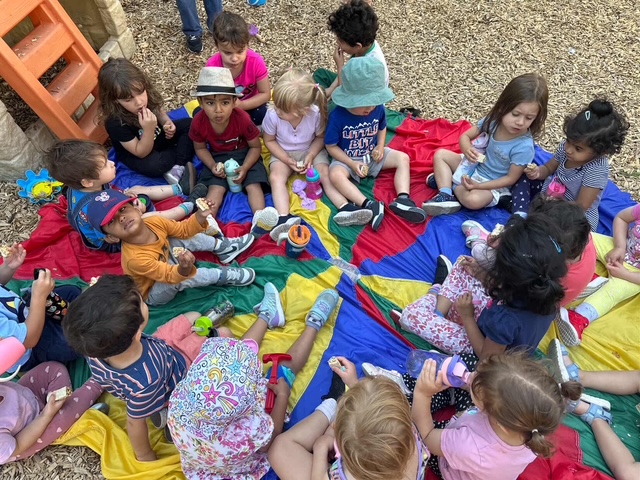 Children enjoy daily group songs and interactive circle‑time activities that help them learn. These playful routines support language development, early numeracy, and social connection.